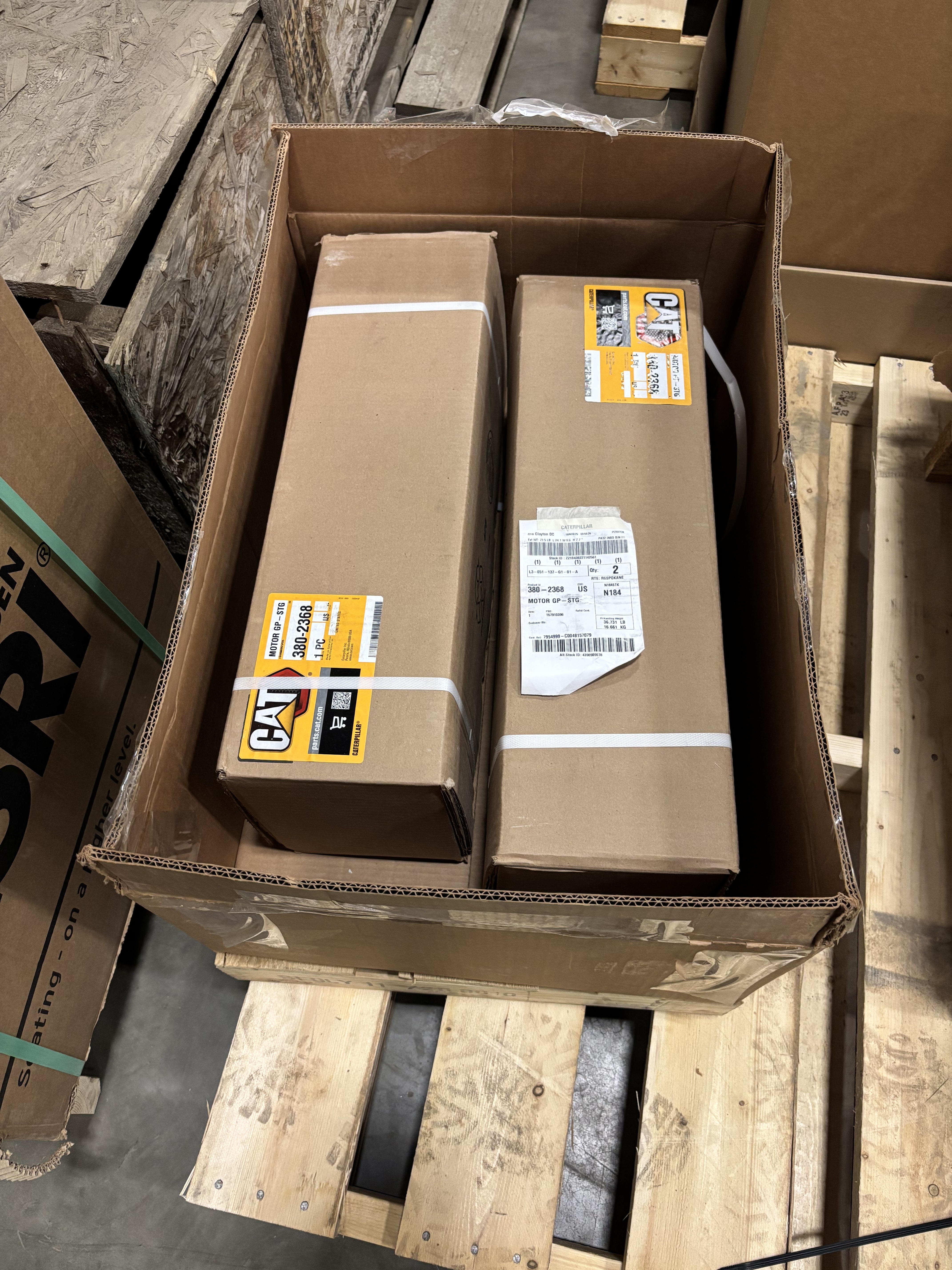 Offered for sale is a lot of two Caterpillar air starting motors, part number 380‑2368, originally procured as OEM replacement starters for CAT engine applications. These units were received into inventory but ultimately not required and remain in new, unused surplus condition.
