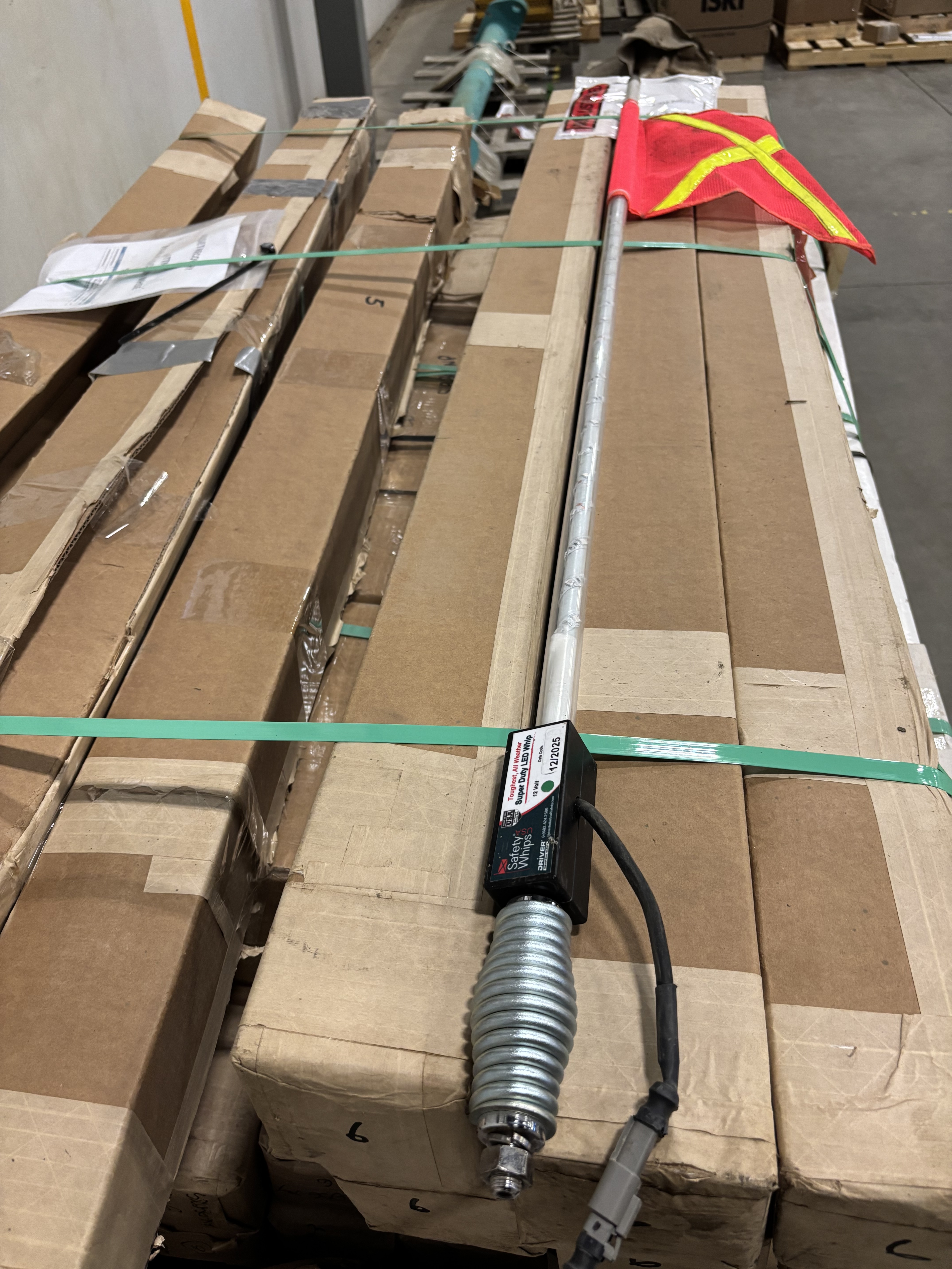 This listing is for unused True North Automotive buggy whips, supplied as surplus material following project procurement. Units remain packaged in manufacturer cartons and palletized for storage, as shown in photos.